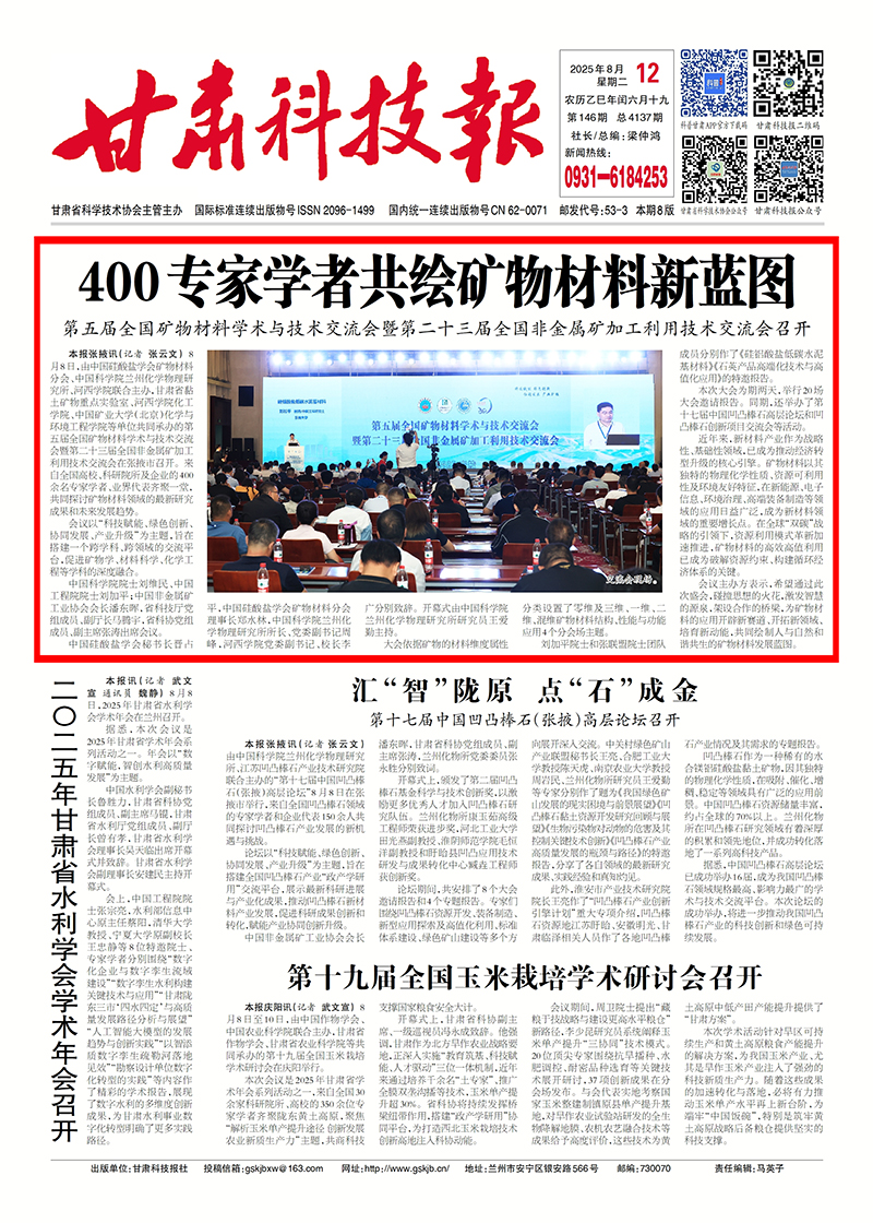 【甘肅科技報】第五屆全國礦物材料學術(shù)與技術(shù)交流會召開 400專家學者共繪礦物材料新藍圖