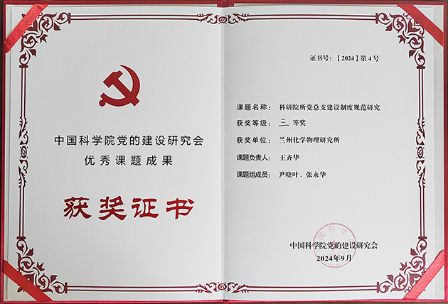 蘭州化物所獲中國(guó)科學(xué)院黨的建設(shè)研究會(huì)2024年優(yōu)秀課題成果三等獎(jiǎng)