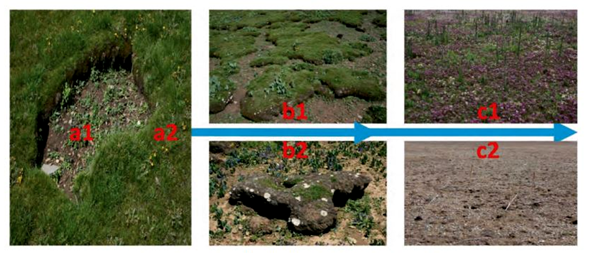 禿斑塊擴(kuò)張與“黑土灘”退化草地的形成過程示意圖