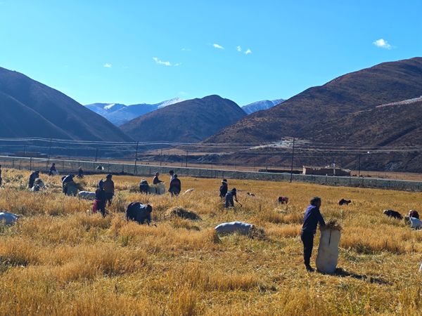 11月3日,為檢驗(yàn)優(yōu)質(zhì)燕麥品種和高產(chǎn)青稞品種在高海拔地區(qū)的產(chǎn)量,牧羊村“兩委”和駐村工作隊(duì)組織牧民開展青稞、燕麥?zhǔn)崭罟ぷ?。由于播種時(shí)間較晚,加之生育期降水較多,燕麥存在結(jié)實(shí)率低,籽粒不飽滿問題,青稞雖長(zhǎng)勢(shì)良好,植株較高,但出現(xiàn)部分倒伏情況。