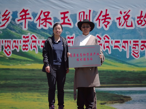 向白玉鄉(xiāng)人民政府交接“高原生態(tài)和資源產(chǎn)業(yè)技術(shù)服務(wù)站”牌匾