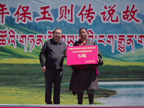 活動(dòng)首日,幫扶團(tuán)隊(duì)與白玉鄉(xiāng)政府舉行科技幫扶啟動(dòng)儀式。海北站站長(zhǎng)張振華研究員代表團(tuán)隊(duì)向白玉鄉(xiāng)人民政府交接“高原生態(tài)和資源產(chǎn)業(yè)技術(shù)服務(wù)站”牌匾。該服務(wù)站的建立,標(biāo)志著白玉鄉(xiāng)擁有了集技術(shù)咨詢、成果轉(zhuǎn)化和人才培養(yǎng)于一體的常態(tài)化科技支撐平臺(tái),為當(dāng)?shù)厣鷳B(tài)保護(hù)與產(chǎn)業(yè)發(fā)展提供長(zhǎng)效智力支持。民盟青海省委副主委、西北高原所李玉林研究員向?qū)趲头龅哪裂虼寰栀?zèng)5噸優(yōu)質(zhì)顆粒飼料,為緩解當(dāng)?shù)啬撩裨陉P(guān)鍵生產(chǎn)時(shí)節(jié)面臨的飼料短缺困難提供幫助。