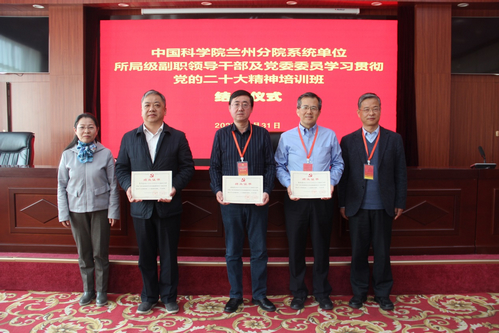 結(jié)業(yè)式上,蘭州分院分黨組副書記陳改學(xué)為學(xué)員頒發(fā)結(jié)業(yè)證,并代表蘭州分院分黨組對參訓(xùn)學(xué)員提出三點(diǎn)希望:一是要持續(xù)在黨的二十大精神全面學(xué)習(xí)上下功夫,始終在思想上、政治上、行動上同以習(xí)近平同志為核心的黨中央保持高度一致;二是要持續(xù)在黨的二十大精神全面把握上下功夫,把學(xué)習(xí)好、宣傳好、貫徹好黨的二十大精神與開展學(xué)習(xí)貫徹習(xí)近平新時代中國特色社會主義思想主題教育結(jié)合起來,制定學(xué)習(xí)教育長效機(jī)制,確保常態(tài)長效;三是要持續(xù)在黨的二十大精神全面落實(shí)上下功夫,積極推動黨的二十大精神、習(xí)近平總書記對中科院的重要指示批示精神和院黨組各項(xiàng)重大決策部署落實(shí)落細(xì),把黨的二十大精神和習(xí)近平新時代中國特色社會主義思想學(xué)習(xí)成果轉(zhuǎn)化為推動工作的強(qiáng)大力量,為實(shí)現(xiàn)高水平科技自立自強(qiáng)、建設(shè)世界科技強(qiáng)國,作出新的更大貢獻(xiàn)。