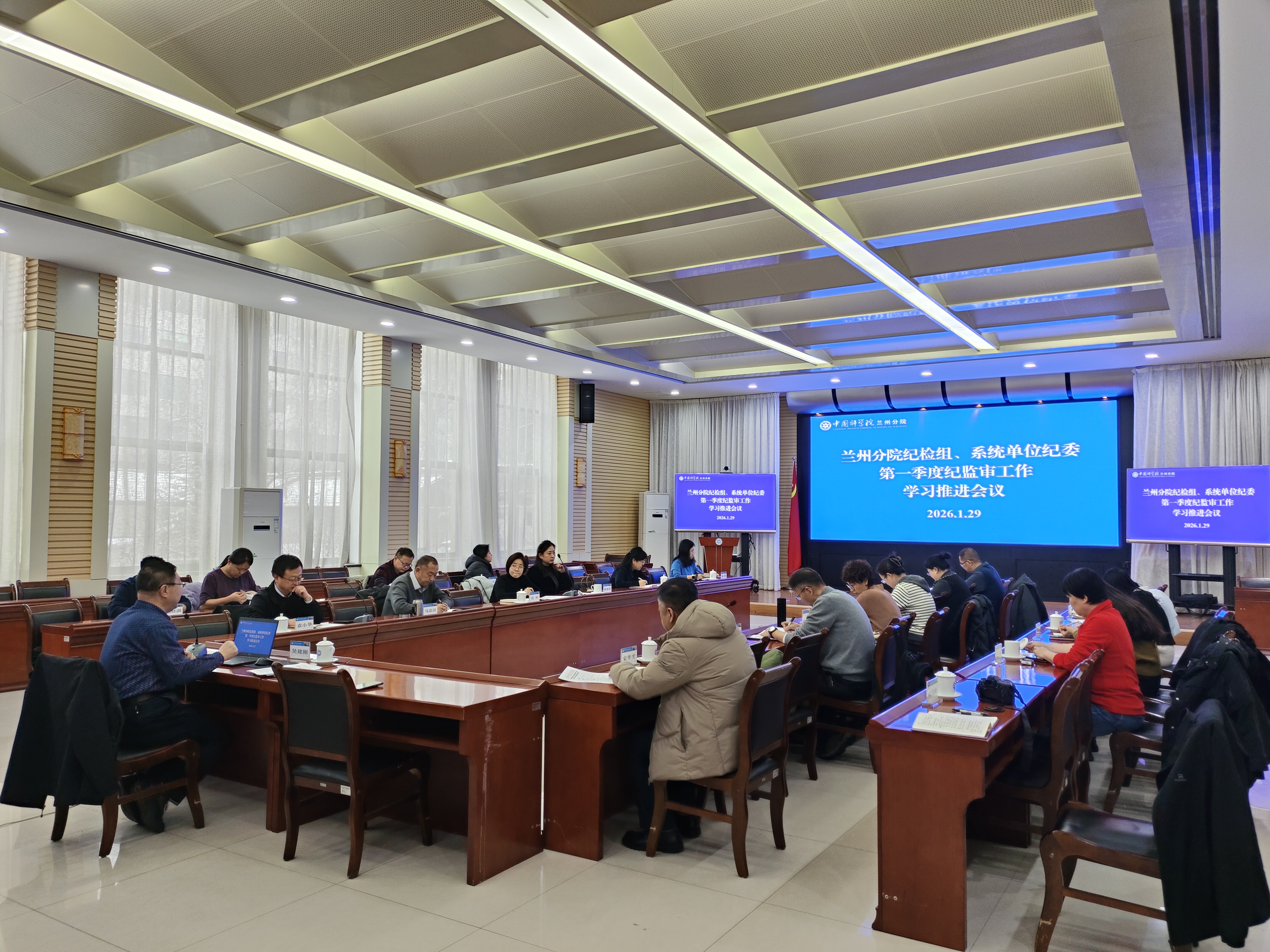 1月29日,中國科學院蘭州分院紀檢組、系統(tǒng)單位紀委組織召開2026年第一季度紀監(jiān)審工作學習推進會議。蘭州分院分黨組成員、紀檢組組長吳建剛出席會議,分院系統(tǒng)各單位紀委書記,紀監(jiān)審部門負責人及全體紀監(jiān)審工作人員參加。
