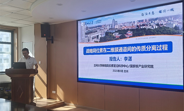 李湛作了題為“戰(zhàn)略同位素在二維膜通道間的傳質(zhì)分離過程”的報(bào)告。介紹了同位素分離的重要性、應(yīng)用需求和分離現(xiàn)狀,創(chuàng)新性地發(fā)展了系列綠色環(huán)保、低能耗、可連續(xù)分離的膜分離技術(shù),他們通過在二維納米片表面及二維層狀膜的層間原位限域引入活性位點(diǎn),利用活性位點(diǎn)的同位素效應(yīng),結(jié)合二維層狀膜的超長(zhǎng)傳質(zhì)通道,利用擴(kuò)散速率的差異進(jìn)行高效氫同位素分離、鋰離子與鋰同位素分離、醫(yī)用同位素的高效分離以及鹵水中鈾資源的高效分離,闡明了復(fù)雜體系中目標(biāo)離子、分子、同位素在二維層間多功能通道的識(shí)別與篩分機(jī)制。