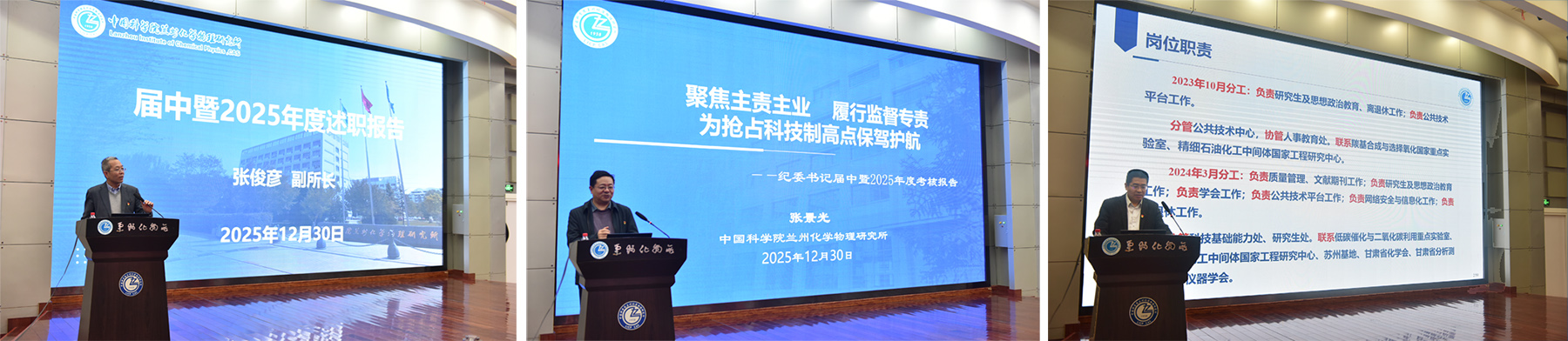 蘭州化物所副所長張俊彥、紀(jì)委書記張景光、副所長石峰分別就各自分管工作作了述職報告。