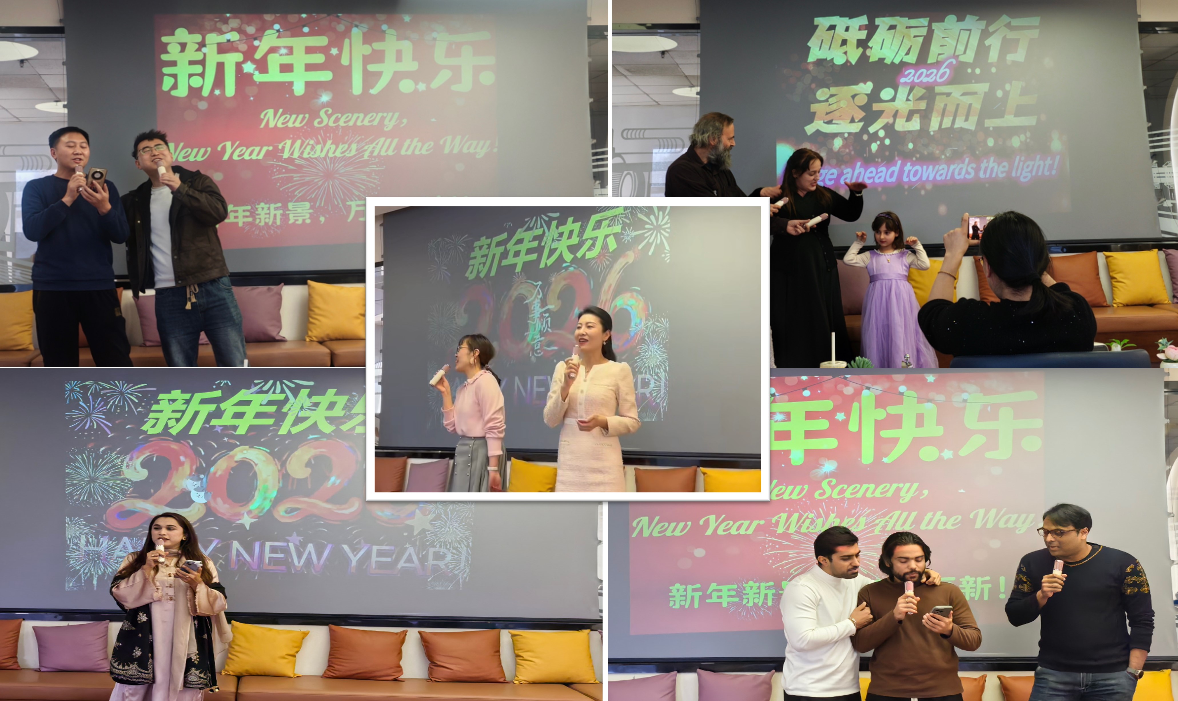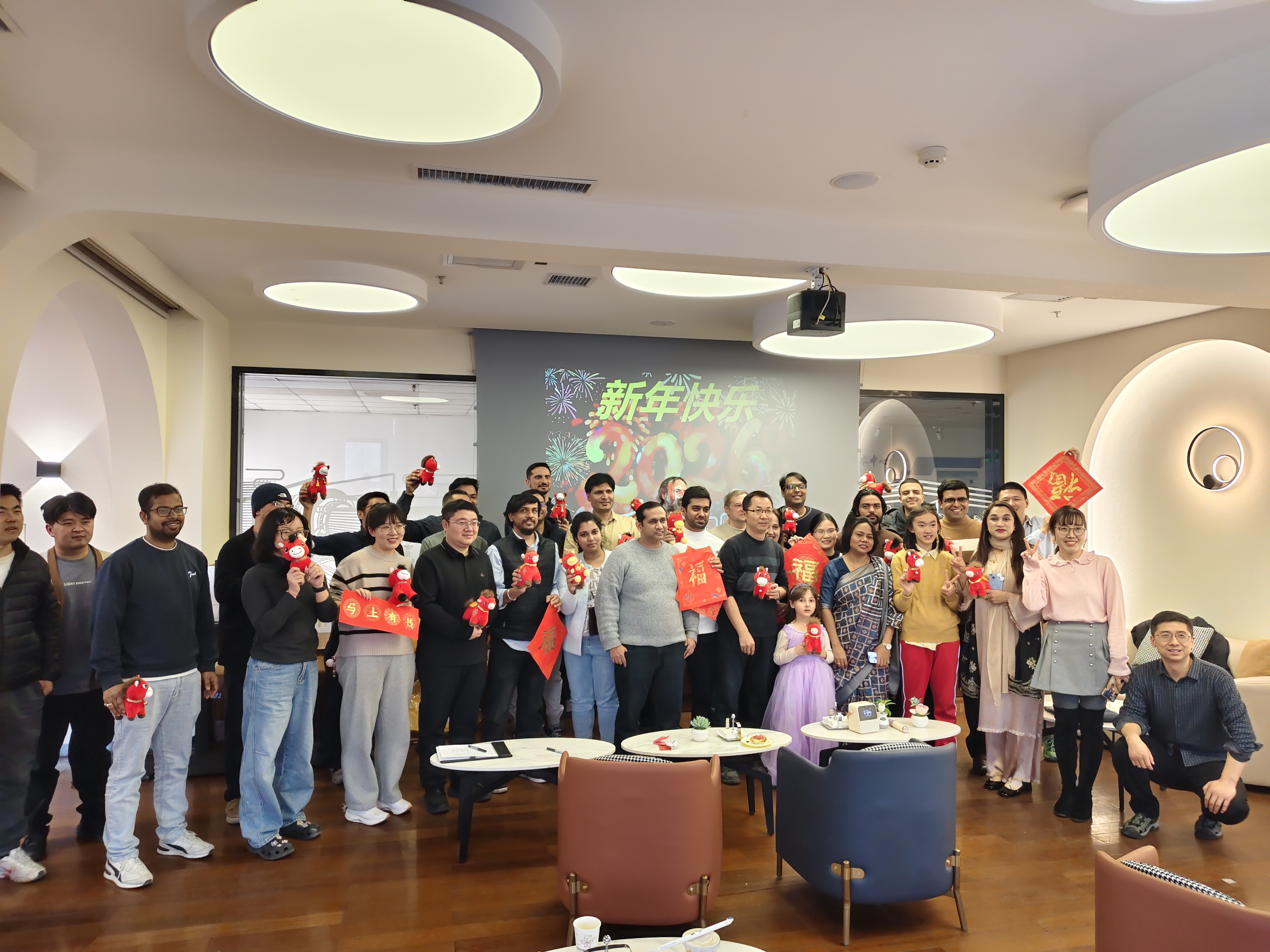隨后的才藝表演環(huán)節(jié)精彩連連,各具特色,展現(xiàn)出豐富多彩的異域風(fēng)情。活動(dòng)以合唱經(jīng)典歌曲《朋友》開(kāi)場(chǎng),歡快的旋律瞬間點(diǎn)燃了節(jié)日氛圍,引起大家情感的共鳴,傳遞了跨越文化的友誼;三名留學(xué)生博士用中文演唱《新年好》時(shí), 傳遞的不僅是節(jié)日祝福,更是跨越時(shí)空的真誠(chéng)融入;一首豪邁又不乏細(xì)膩、溫暖又治愈的《蘋果香》,悠長(zhǎng)的旋律久久縈繞在大家的心間。現(xiàn)場(chǎng)氣氛熱烈,嘉賓踴躍登場(chǎng),有外籍員工全家攜手登臺(tái)演唱《小豬睡覺(jué)》為活動(dòng)注入了暖意與童真;有外籍人員的家屬們紛紛上臺(tái)為大家?guī)?lái)自己民族和家鄉(xiāng)的歌曲,歌聲宛如一道道橋梁,將遙遠(yuǎn)的故鄉(xiāng)與此刻的舞臺(tái)連接,生動(dòng)詮釋了“此心安處是吾鄉(xiāng)”,展現(xiàn)了研究所大家庭包容、有愛(ài)的濃厚氛圍。