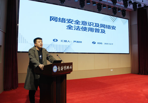 蘆翰林授課主題為《網(wǎng)絡(luò)安全意識(shí)及網(wǎng)絡(luò)安全法使用普及》,內(nèi)容分為三個(gè)部分。蘆翰林首先從日常生活入手,列舉了大家在日常生活中看似平常卻不同程度上存在網(wǎng)絡(luò)安全隱患的行為,如隨手丟棄快遞單據(jù)、使用免費(fèi)WIFI、共享充電樁、隨便處置舊手機(jī)、隨意掃描二維碼和使用弱口令等,講解了如何消除這些隱患的方法,尤其和大家分享了設(shè)置強(qiáng)密碼的技巧。第二部分以日常辦公中存在的網(wǎng)絡(luò)安全隱患為重點(diǎn)內(nèi)容,講解每個(gè)工作人員該如何保守工作秘密和內(nèi)部資料,提醒與會(huì)人員警惕微信辦公帶來的隱患。第三部分,從總則、網(wǎng)絡(luò)安全支持與促進(jìn)、網(wǎng)絡(luò)運(yùn)行安全、網(wǎng)絡(luò)信息安全、監(jiān)控預(yù)警與應(yīng)急處置、法律責(zé)任、附則七個(gè)方面普及了網(wǎng)絡(luò)安全法的內(nèi)容。這也是《中華人民共和國網(wǎng)絡(luò)安全法》自2017年6月1日施行以來,首次在全所范圍內(nèi)開展宣傳普及培訓(xùn)。