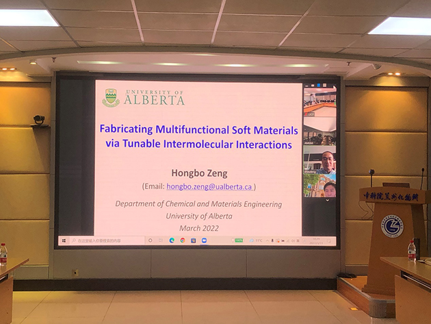 3月11日,中國科學院蘭州化學物理研究所固體潤滑國家重點實驗室邀請加拿大工程院院士、加拿大阿爾伯塔大學Hongbo Zeng教授作在線學術報告,報告題目為“Fabricating Multifunctional Soft Materials via Tunable Intermolecular Interactions”。報告由副所長周峰研究員主持,相關領域科研人員100余人參加了報告會。