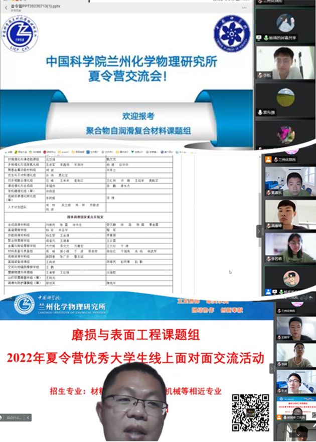 7月10至15日,中國科學院蘭州化學物理研究所舉辦了2022年“蘭化行,科研情”優(yōu)秀大學生線上夏令營。本次夏令營與中科院蘭州教育基地“我的科學夢”優(yōu)秀大學生暑期學校同期舉行,來自吉林大學、青海大學、山東師范大學等高校的70名優(yōu)秀大學生參加了夏令營。結(jié)合疫情防控要求,夏令營以線上形式舉行。