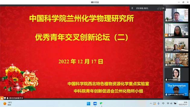 12月17日,中國科學(xué)院蘭州化學(xué)物理研究所中科院西北特色植物資源化學(xué)重點(diǎn)實驗室聯(lián)合中科院青年創(chuàng)新促進(jìn)會蘭州化物所小組舉辦了優(yōu)秀青年交叉創(chuàng)新論壇(二)。本次論壇通過騰訊會議召開,相關(guān)領(lǐng)域科研人員和研究生參加了論壇。